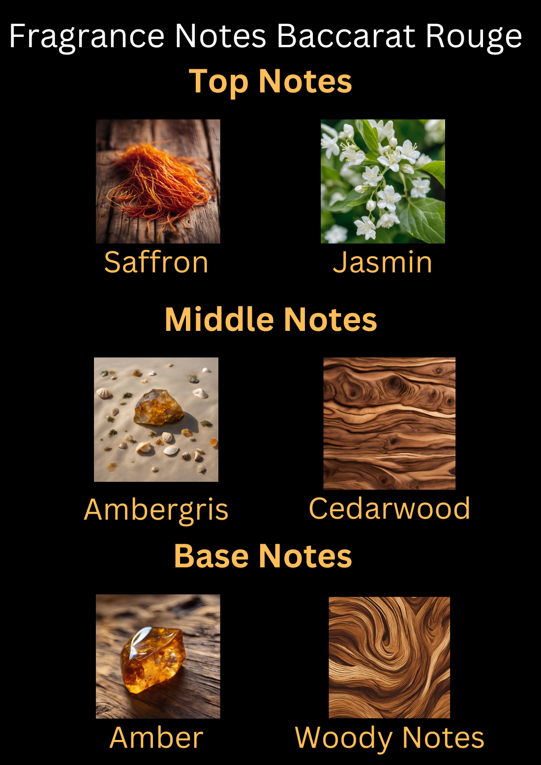 Baccarat Rouge is a captivating blend that balances floral, woody, and amber accords to create a scent as mesmerizing as it is luxurious. This fragrance exudes sophistication and elegance, leaving a lasting impression with its rich and intricate composition.